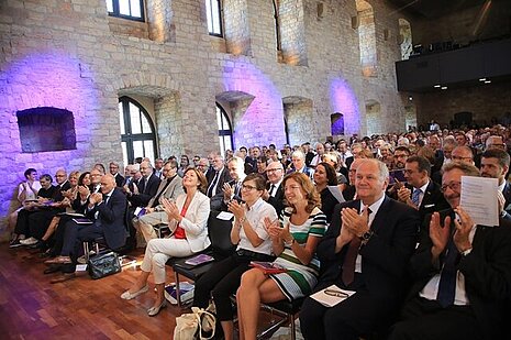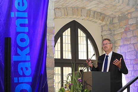 Über die Herausforderungen für Diakonie und Kirche in der offenen Gesellschaft sprach der Präsident der Diakonie Deutschland, Ulrich Lilie, der den Aufbruchsgeist und die Intention des Hambacher Festes 1832 ins Hier und Heute transformierte: "Dass Sie Ihr Jubiläum an diesem Ort feiern, ist ein Statement für einen neuen gesellschaftlichen Aufbruch, für eine offene und demokratische Gesellschaft, das ich sehr gerne unterstütze." Er wandte sich gegen die "grassierende Empörungslust" aller Couleur, die jeden konstruktiv-kritischen Dialog verhindere, und plädierte stattdessen für die "Kunst des Zuhörens", die "Kraft des vernünftigen Arguments" und die "Anstrengung des kontroversen Dialogs". Mit Zuhören und Reden allein sei es freilich nicht getan. Kirche und Diakonie sieht Lilie als Akteure, die Veränderungsprozesse im Sozialraum anstoßen und mitgestalten und damit "Teil der Lösung der großen gesellschaftlichen Herausforderungen werden".