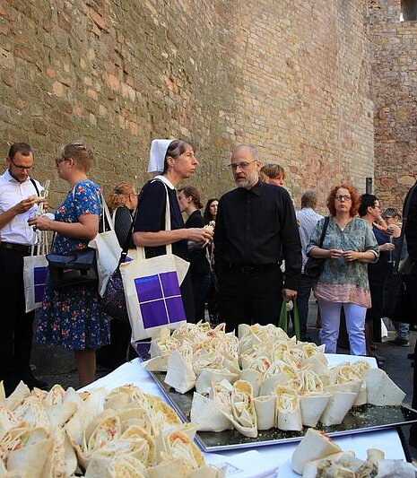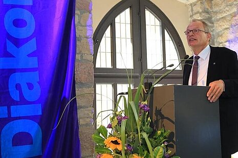 In Anspielung auf den Ort der Feierlichkeiten sagte der für Diakonie zuständige Oberkirchenrat Manfred Sutter in seiner Begrüßung: "Normalerweise findet man uns in Suppenküchen und Kleiderkammern." Aber das Hambacher Schloss - die Wiege der Demokratie - stehe für Werte wie Freiheit, Gerechtigkeit, das Recht auf freie Entfaltung der Persönlichkeit und auf Teilhabe. "Diese Werte spiegeln unseren Auftrag als Diakonie, uns Menschen bedingungslos zuzuwenden, wider", so Sutter weiter.