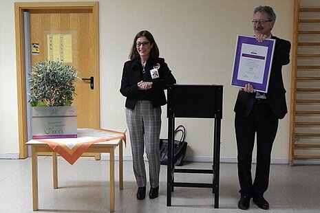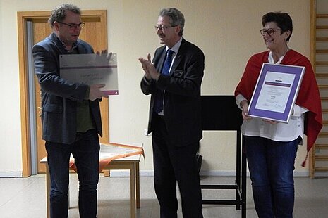 Pirmasens (dwp). In feierlichem Rahmen haben Oberkirchenrat Manfred Sutter und Sabine Jung, Abteilungsleiterin und Mitglied der Geschäftsführung des Diakonischen Werks Pfalz, dem Protestantischen Lukaskindergarten Pirmasens das Evangelische Gütesiegel BETA verliehen. Die Kita ist damit die 17. ausgezeichnete Einrichtung im Gebiet der Landeskirche.