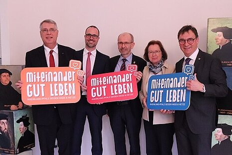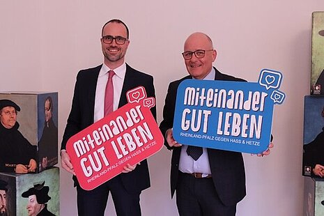Mainz (lk). Die obersten Repräsentanten der evangelischen Kirchen in Rheinland-Pfalz sowie die Abreitsgemeinschaft Diakonie in Rheinland-Pfalz haben sich dem Appell „Miteinander Gut Leben - Rheinland-Pfalz gegen Hass und Hetze“ angeschlossen. Das von der Landesregierung initiierte Projekt wendet sich „gegen jede Form von Extremismus und Gewalt, gegen Hass und Hetze, ob in Worten oder Taten, ob in der digitalen Welt oder auf der Straße“, erklärte der Chef der Staatskanzlei, Clemens Hoch, bei der Unterzeichnung des Appells.