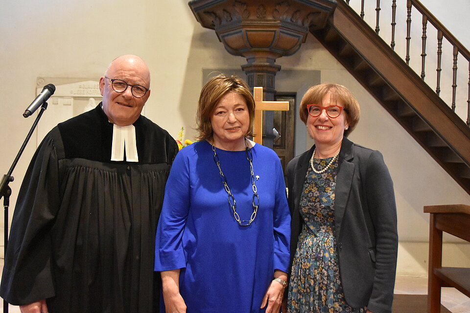 Mit einem ökumenischen Gottesdienst in der protestantischen Kirche Dannstadt und einem anschließenden Empfang wurde die Geschäftsführerin der Ökumenischen Sozialstation Doris Krieg in den Ruhestand verabschiedet. Bei diesem Anlass wurde gleichzeitig ihre Nachfolgerin Katrin Winter eingeführt, die seit 2022 amtierende Pflegedienstleisterin Janine Drost offiziell vorgestellt und zwei langjährige Mitarbeiter geehrt.