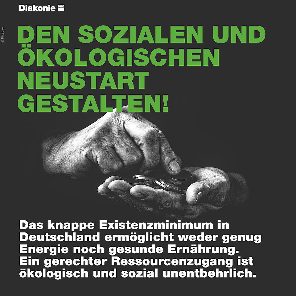 Soziale und ökologische Fragen seien nicht zu trennen, betonen Diakonie, NABU und Armutskonferenz: "Wir wollen mit insgesamt 40 Unterzeichnenden der 'Zehn Thesen für einen sozialen und ökologischen Neustart' als breites Bündnis von zivilgesellschaftlichen Organisationen deutlich machen: soziale und ökologische Fragen gehören zusammen und brauchen gemeinsame Antworten. Auch Menschen mit geringem Einkommen müssen die Möglichkeit bekommen, ökologisch verantwortungsvoll zu konsumieren und sich gesund zu ernähren". Darum seien Steuerungs- und Fördermechanismen nötig, die arme Haushalte entlasten und das Klima schützen. "Die ökologische Transformation kann nur gelingen, wenn sie den sozialen Frieden wahrt", so Diakonie, NABU und nak.