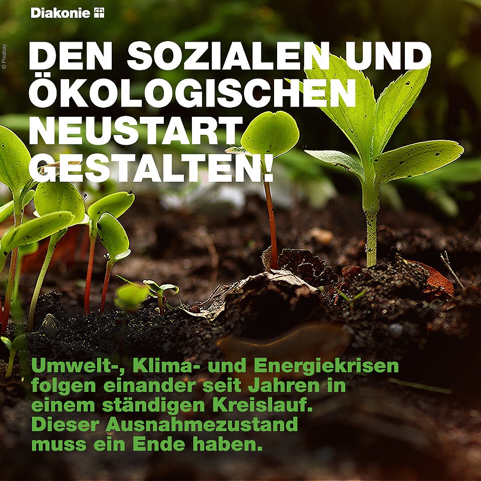 40 Organisationen aus dem Sozial- und Umweltbereich fordern in einer gemeinsamen Erklärung einen sozialen und ökologischen Neustart. In einem Zehn-Thesen-Papier sprechen sich die Diakonie Deutschland, der NABU, die Nationale Armutskonferenz gemeinsam in einem breiten Bündnis unter anderem für eine naturverträgliche und sozial gerechte Energiewende, Maßnahmen gegen Naturzerstörung und für den Erhalt der Biodiversität, eine Teilhabe aller an umweltschonender Mobilität, eine klimaschonende Landwirtschaft und nachhaltige Arbeitsformen aus.