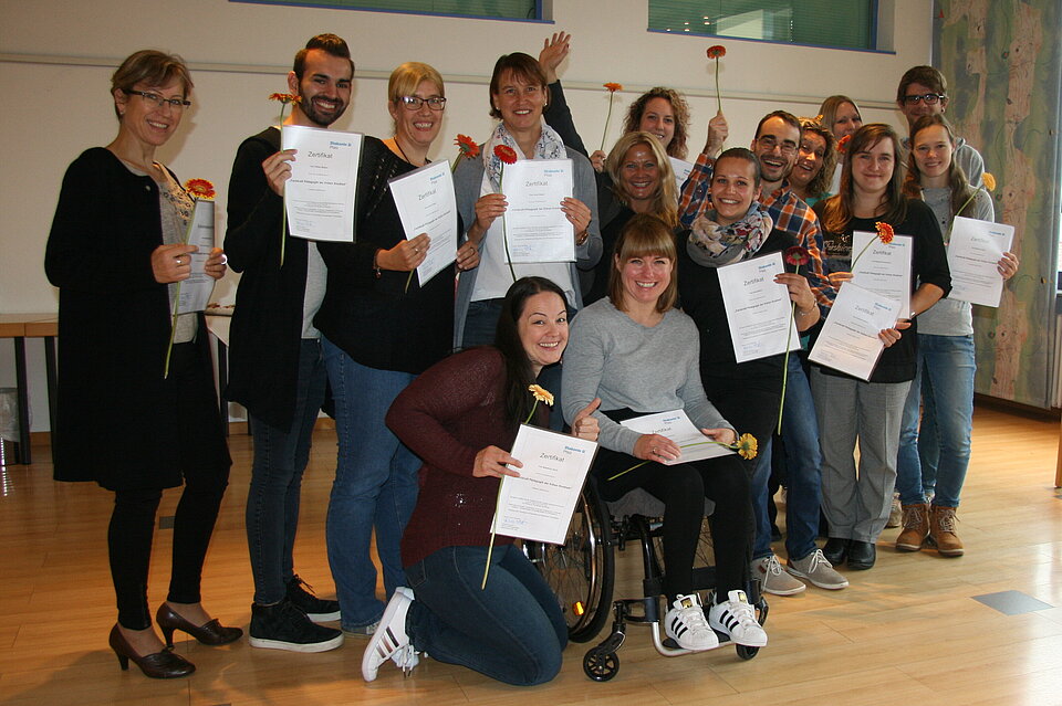 Nach zwei Jahren mit 16 Fortbildungstagen bekamen 18 Teilnehmende ihr Zertifikat "Fachkraft Pädagogik der frühen Kindheit" überreicht.